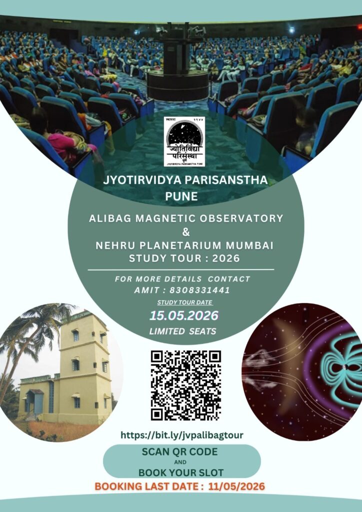 Jyotirvidya Parisanstha has arranged a one-day study tour to the Alibag Geomagnetic Observatory and Nehru Planetarium, Mumbai, on Friday, 15th May 2026, from 5 am to 10 pm.